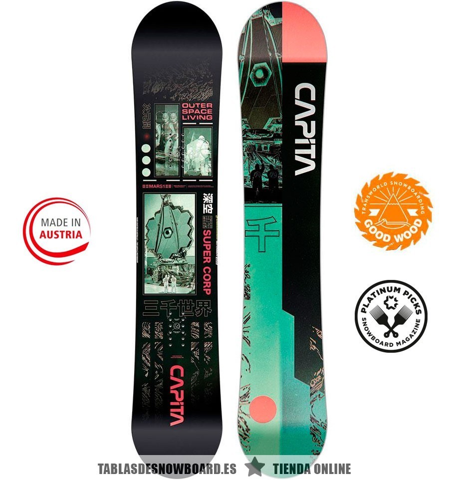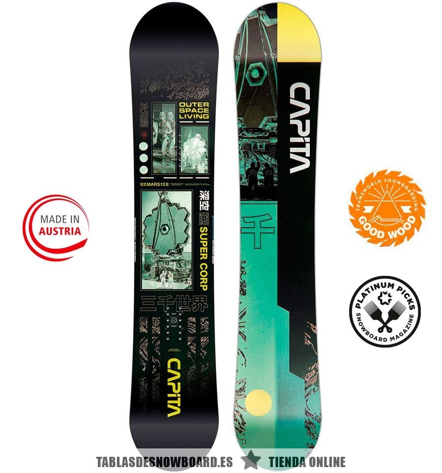 La más recomendable para quienes buscan su primera tabla buena. Esta Outerspace Living 2021 de CAPiTA cuenta con mejoras en su construcción y nueva base con los últimos avances. La mejor relación del mercado entre peso, rendimiento y precio, con un equilibrio perfecto (flex 5/10). La Allmountain/Freeride nº1 en calidad/precio. Basada en la Mercury.