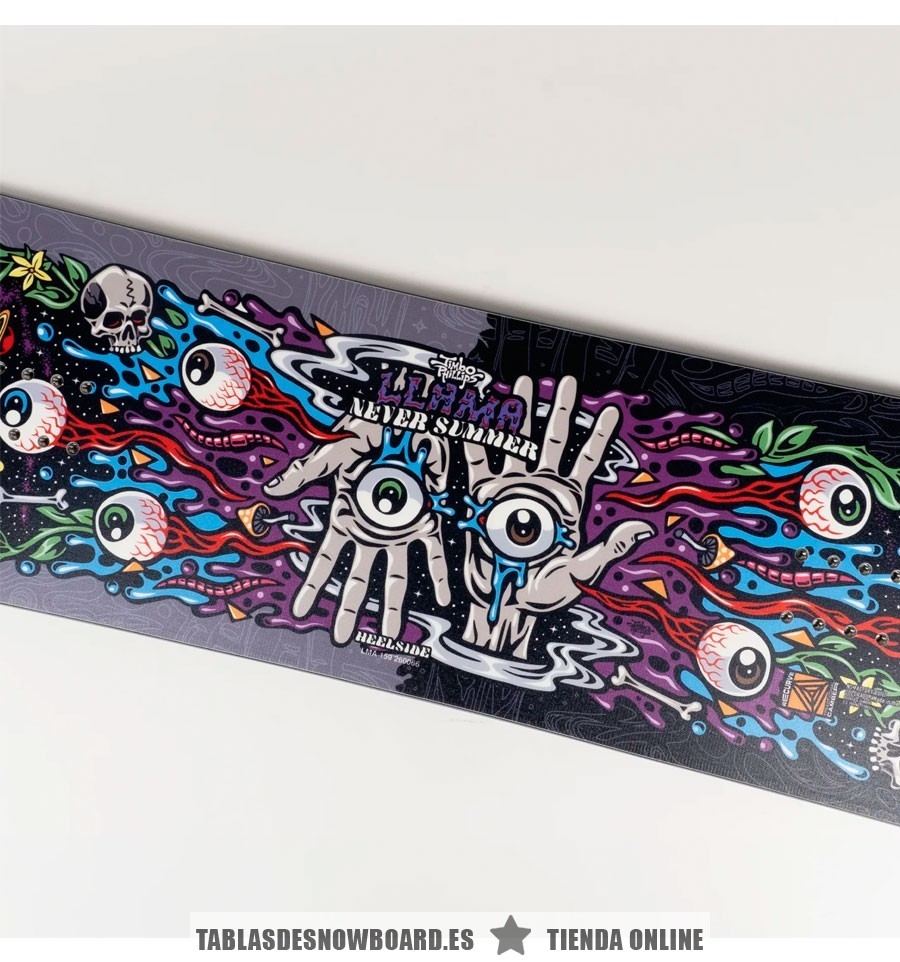 Este modelo Llama 2025/2026 de Never Summer es la tabla de snow más versátil y con mejor rendimiento para Freestyle. Perfecta para riders que quieren una tabla juguetona, potente y precisa. Con su diseño asimétrico inspirado en Eric ‘The Llama’ Segris y los gráficos del legendario artista Jimbo Phillips.