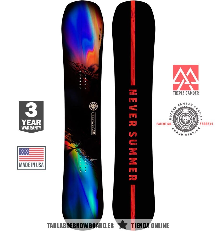 La tabla de snow que lo cambia todo. Esta Proto FR 2023 el resultado de combinar la tabla más vendida de Never Summer con el exclusivo y patentado Triple Camber Profile; el mejor sistema en cuanto a POP, respuesta, agarre, fuerza, velocidad y flotabilidad. Una auténtica bestia All Around, si la pruebas nunca volverás a querer otra.