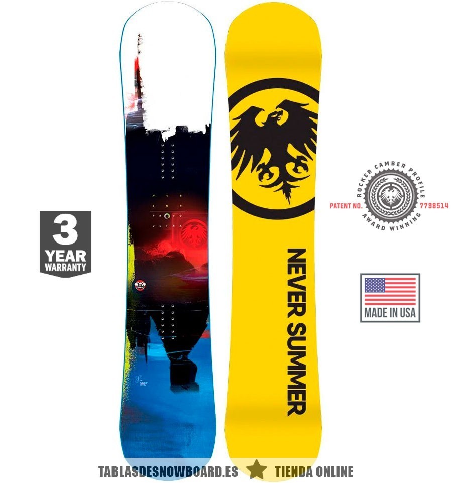 Una tabla de snow digna de un campeón del mundo. La Proto Ultra 2021 de Never Summer Snowboards es un modelo diseñado para el rider profesional Chris Corning, evolución de la legendaria Proto Type Two. Una tabla para la conducción más agresiva, para competir al máximo nivel, gracias su flex rígido para más estabilidad. El modelo definitivo para el freestyle de alta intensidad.