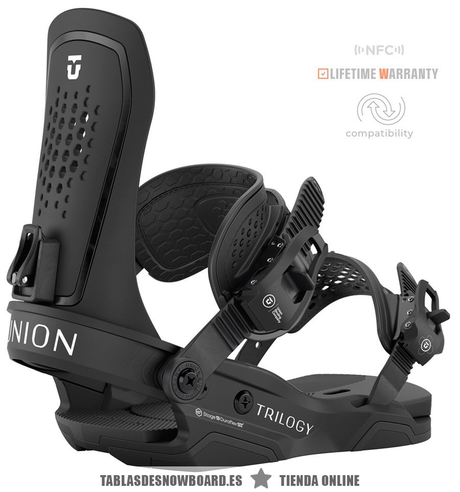 Esta nueva Trilogy 2025/2026 de Union Bindings es esa fijación que llevas tiempo buscando y no te atrevías a exigir: ligera, reactiva y con mejoras reales que notas desde el primer descenso. Si buscas un riding potente, seguro y versátil (en pista, powder o líneas de freeride) esta versión lo eleva todo, con rediseño completo en highback, base y amortiguación. No te conformes con menos.